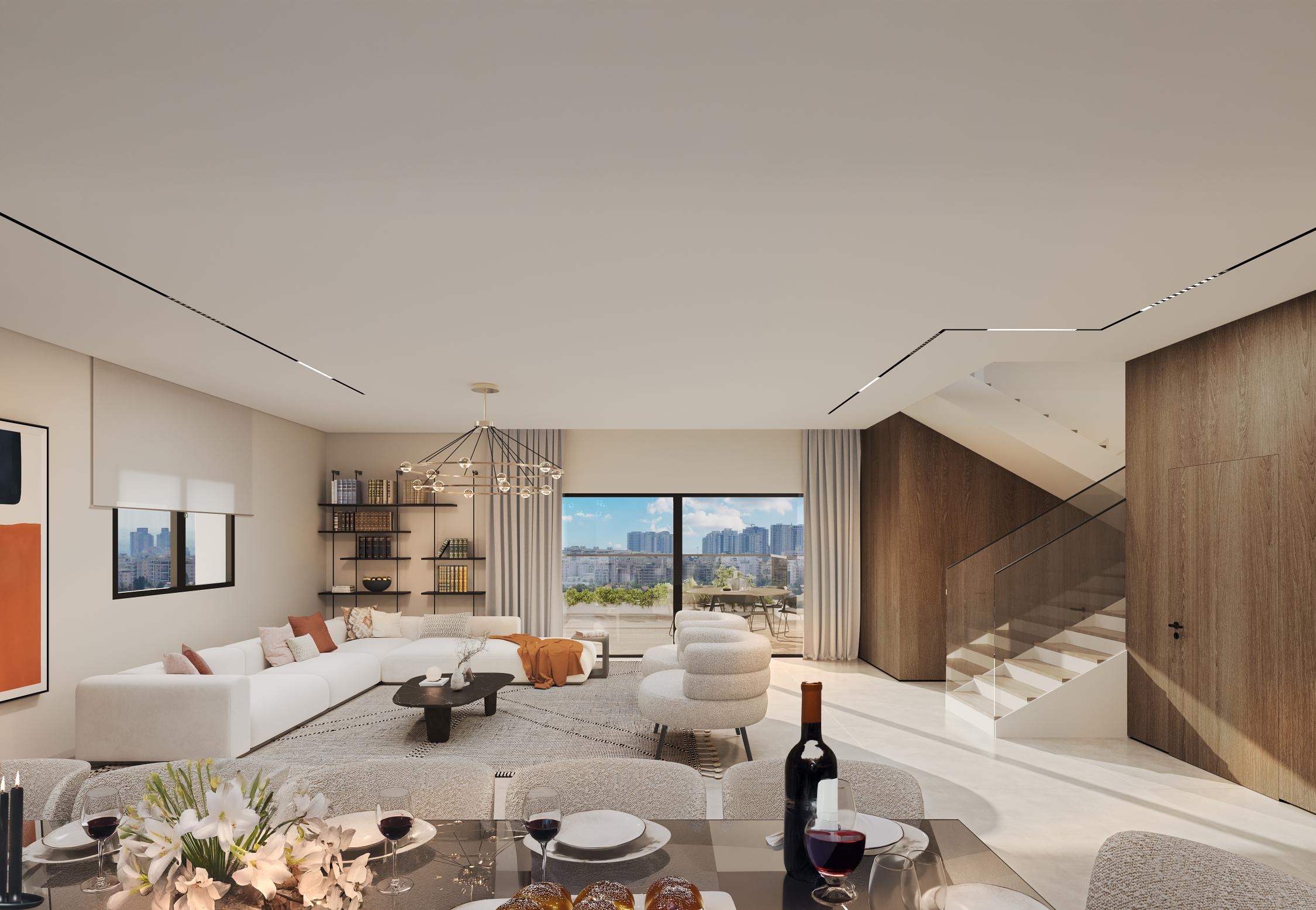 תמהיל הדירות בפרויקט מגוון, אך עיקר העניין מתרכז דווקא בדירות הגדולות: דירות 5 חדרים מרווחות בשטח של כ-130 מ"ר, לצד דופלקסים ופנטהאוזים רחבי ידיים. אלו מהוות כיום את עיקר ההיצע שנותר, ומהוות מענה מדויק למשפחות המבקשות להתרחב – מבלי להתפשר על איכות או מיקום.