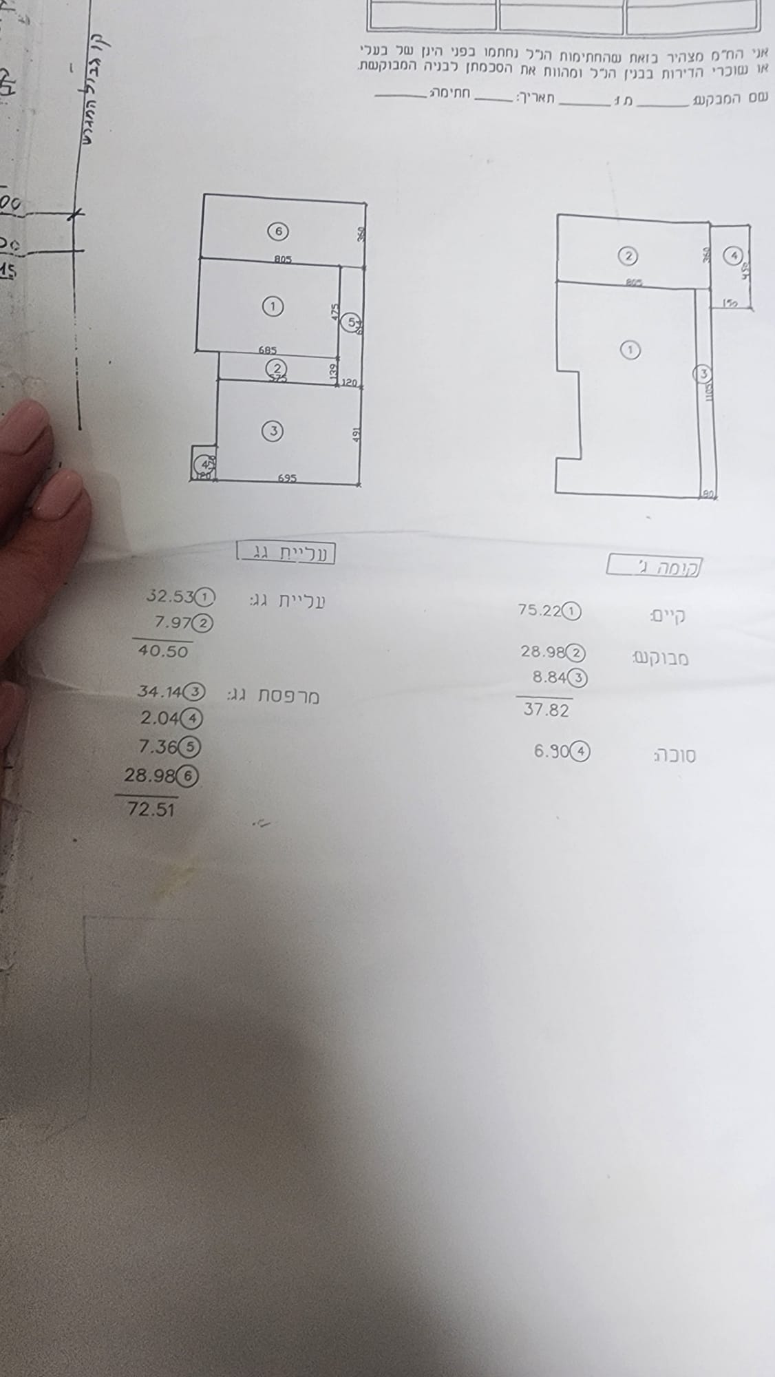 שלד של 40 מ"ר בנוי בעורף הדירה ומהצד, בתהליך אישורים.