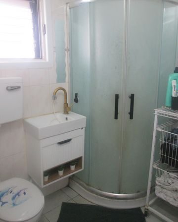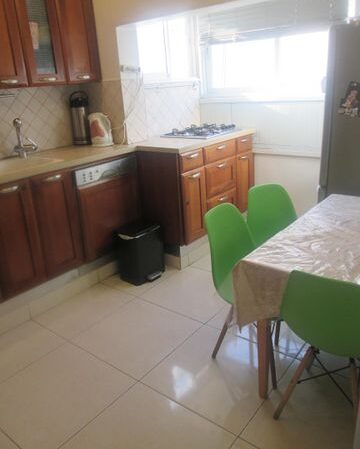 דירת ארבעה חדרים מרווחת, כ 80 מטר, מטבח גדול, שתי חדרים גדולים ועוד חדר רגיל, שירותים כפולים, סורגים בדירה, ממוזגת, מרפסת סוכה, קומה 2.5, אופציה לבניה בגג.