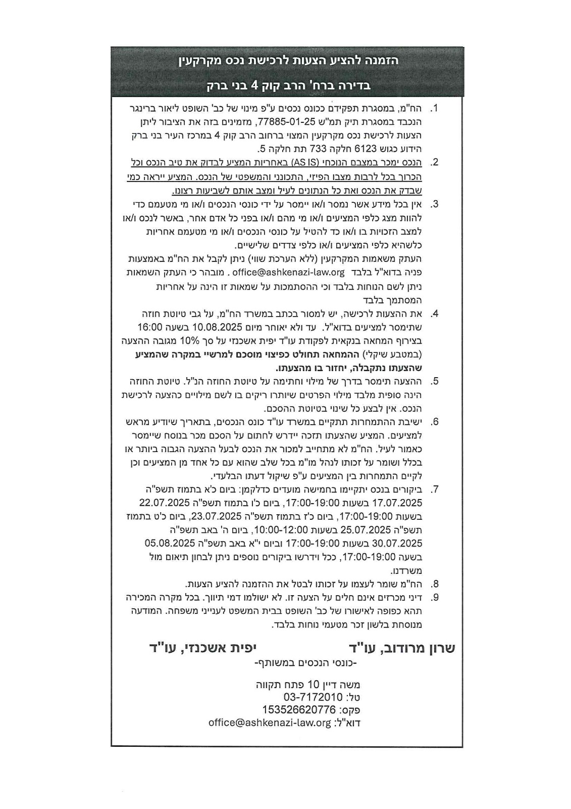 פרויקט מנחם בגין 11 בני ברק – דירות 3–5 חדרים, קבלן יוקרתי, אפשרות ליחידת דיור, מחירי פריסייל