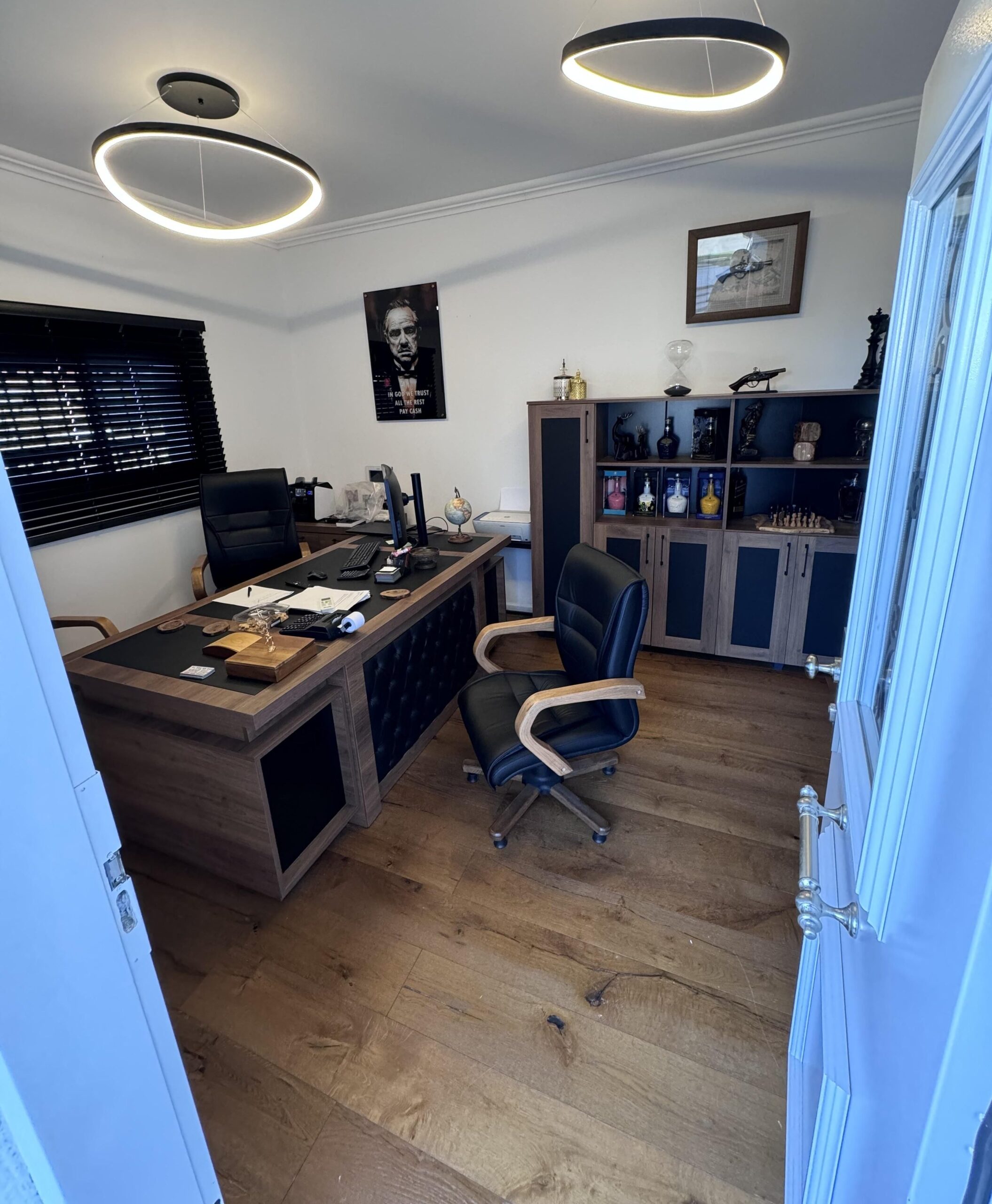 מלפנים ומאחורי הבית ללא שכנים, קיים משרד חיצוני + חדר שירות חיצוני + מחסן