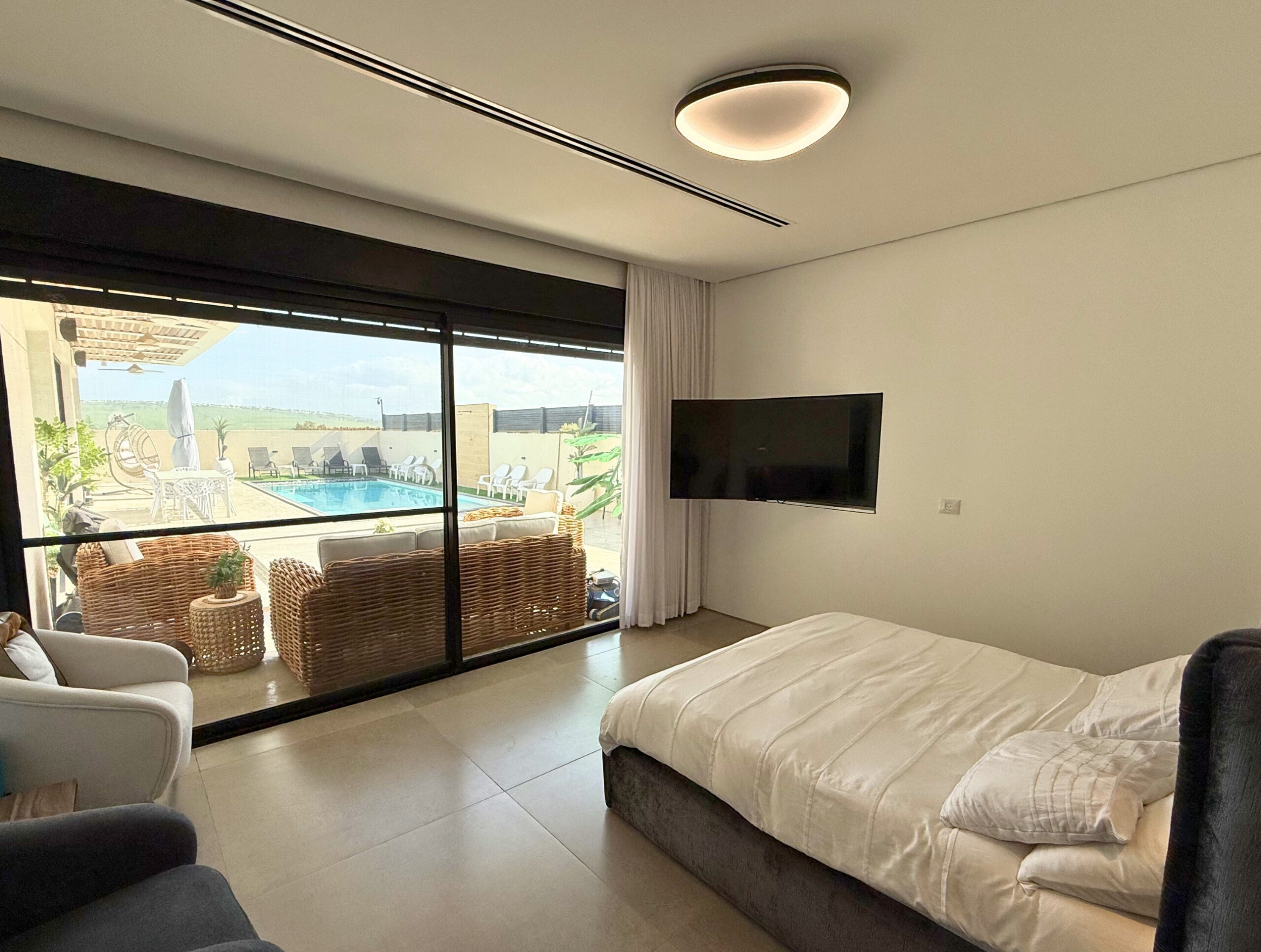 וילת יוקרה ייחודית הבנויה בסטנדרט גבוה במיוחד עם 2 צימרים מניבים 470 מר בנוי מגרש של 900 מר 6 חדרי שינה 3 מקלחות 4 שירותים מפרט יוקרתי הכולל נגרות ברמה גבוהה ריצוף 100×100 בטון מוחלק בכל הבית תקרות גבוהות עם ניתוקים דלת כניסה חכמה מצופה אבן טבעית דלתות פנדור מדרגות אבני בזלת חדר קולנוע פרטי עם מקרן 150 אינץ מערכות מיזוג VRF וגג סולארי 15 קילוואט בנוסף שני צימרים מאובזרים בגודל 45 מר עם גקוזי ובריכה