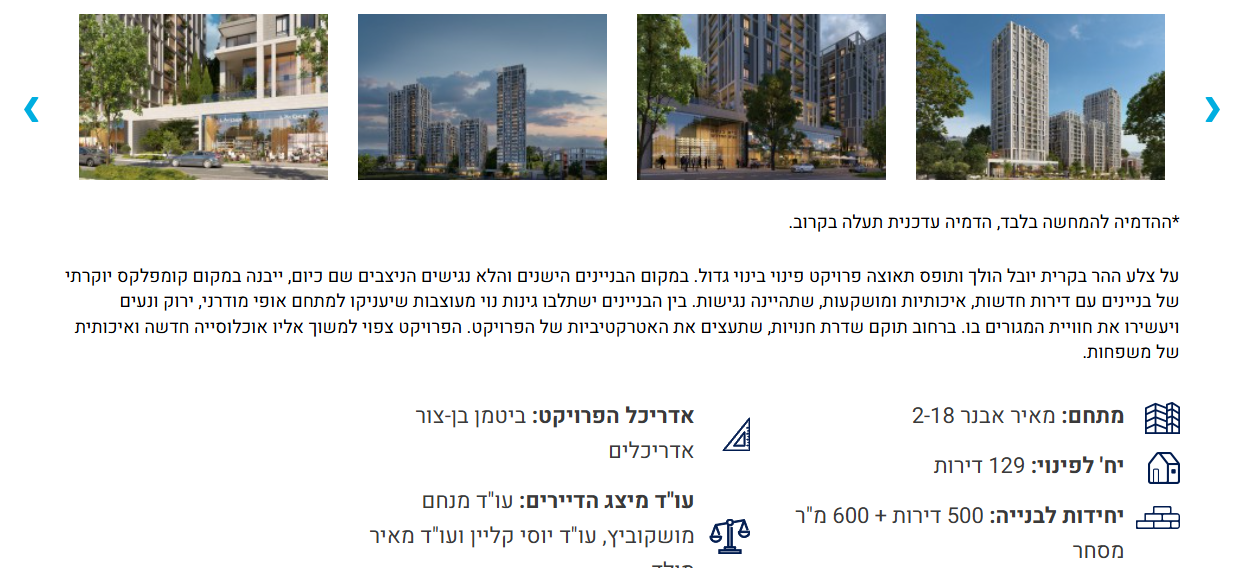 שימו לב! מדובר בהזדמנות לרכישת 2 דירות מחולקות להשקעה במתחם פינוי בינוי מתקדם בירושלים בשכונת קרית יובל המתחדשת בירושלים. דירה אחת בקומה 4 – 2 חדרים 54 מ"ר, מרפסת 11 מ"ר ודירה נוספת בקומה 5 – 3 חדרים 55 מ"ר מרפסת הכנסה כוללת משכירות : 8,400 ש"ח. חברה יזמית : החברה להתחדשות ירושלים. סטטוס הפרויקט : תבע בהפקדה! במסגרת התכנית יתקבלו 2 דירות תמורה בטאבו!: דירה 1. 98 מ"ר דירה 2. 88 מ"ר בנוסף למחסן וחניה. שווי כולל לדירות העתידית: 6,700,000 ש"ח!
