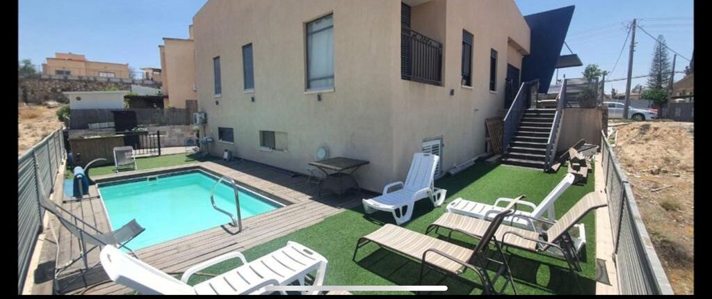 בית פרטי בשכונת שקד המבוקשת , נוף מדברי פתוח עוצר נשימה , בריכה בגודל 3/6 הכוללת חימום סולארי ,2 יחידות דיור שמושכרות ב 5600 ש"ח , מערכת סולארית מניבה כ 2000 ש"ח לחודש , שער חשמלי , פרגולות , דודי שמש, ממ"ד , גינה ענקית מגרש 458 מ"ר