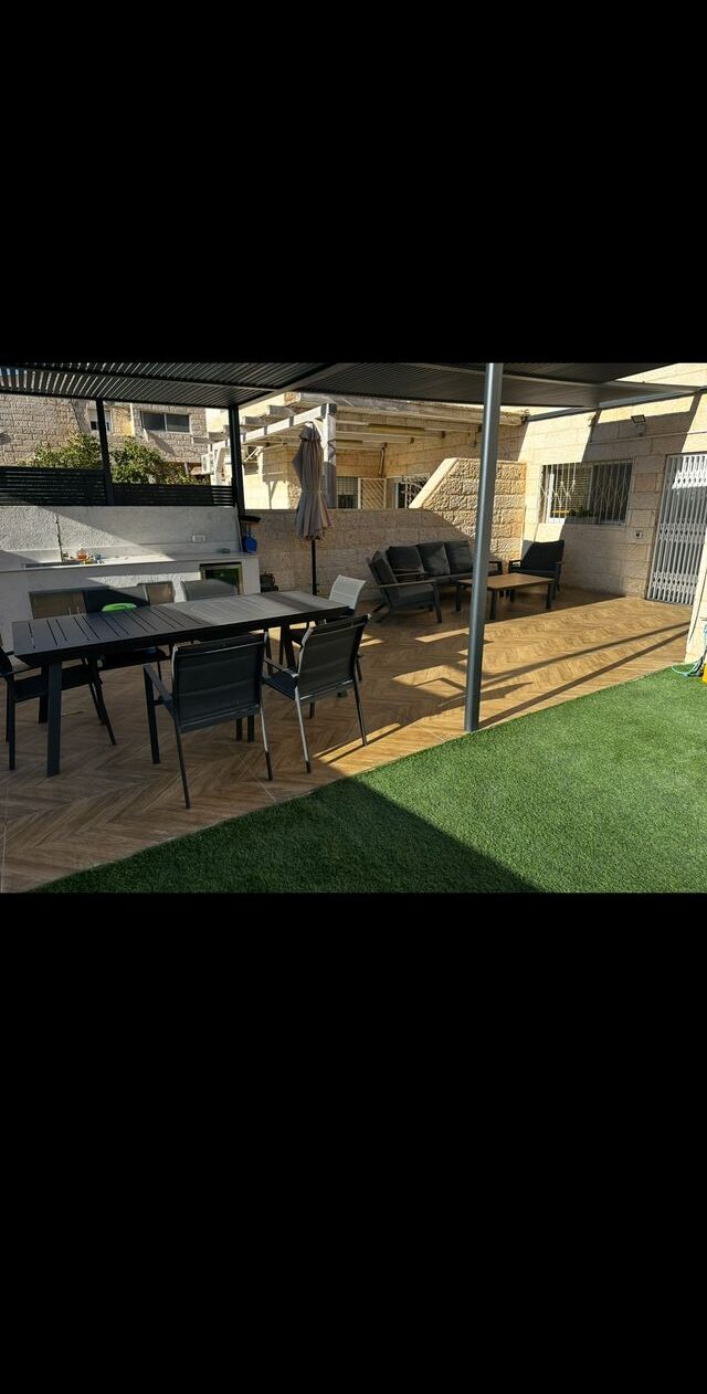 ללא תיווך.. דירת גן 125 מ"ר + 160 מ"ר גינה פרגולה אלומיניום 50 מ"ר מטבח חוץ מאובזר עם כל התוספות דוד שמש נוסף למקלחת חוץ בגינה מטבח כפרי מנגר פרטי יחידת הורים מפנקת עם מקלחת זוגית בעלת שתי ראשי דוש אופציה ליחידת דיור עם כניסה פרטית מהבניין אפשרות לפתיחת חלל משופצת ברמת פינוק סורגים ומזגנים בכל החדרים שכונה שקטה, קרובה לבתי ספר גנים ותחבורה ציבורית פינוי גמיש