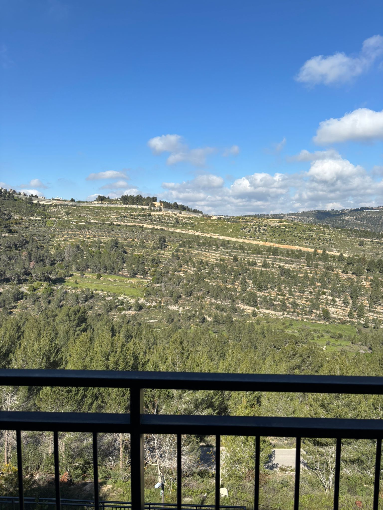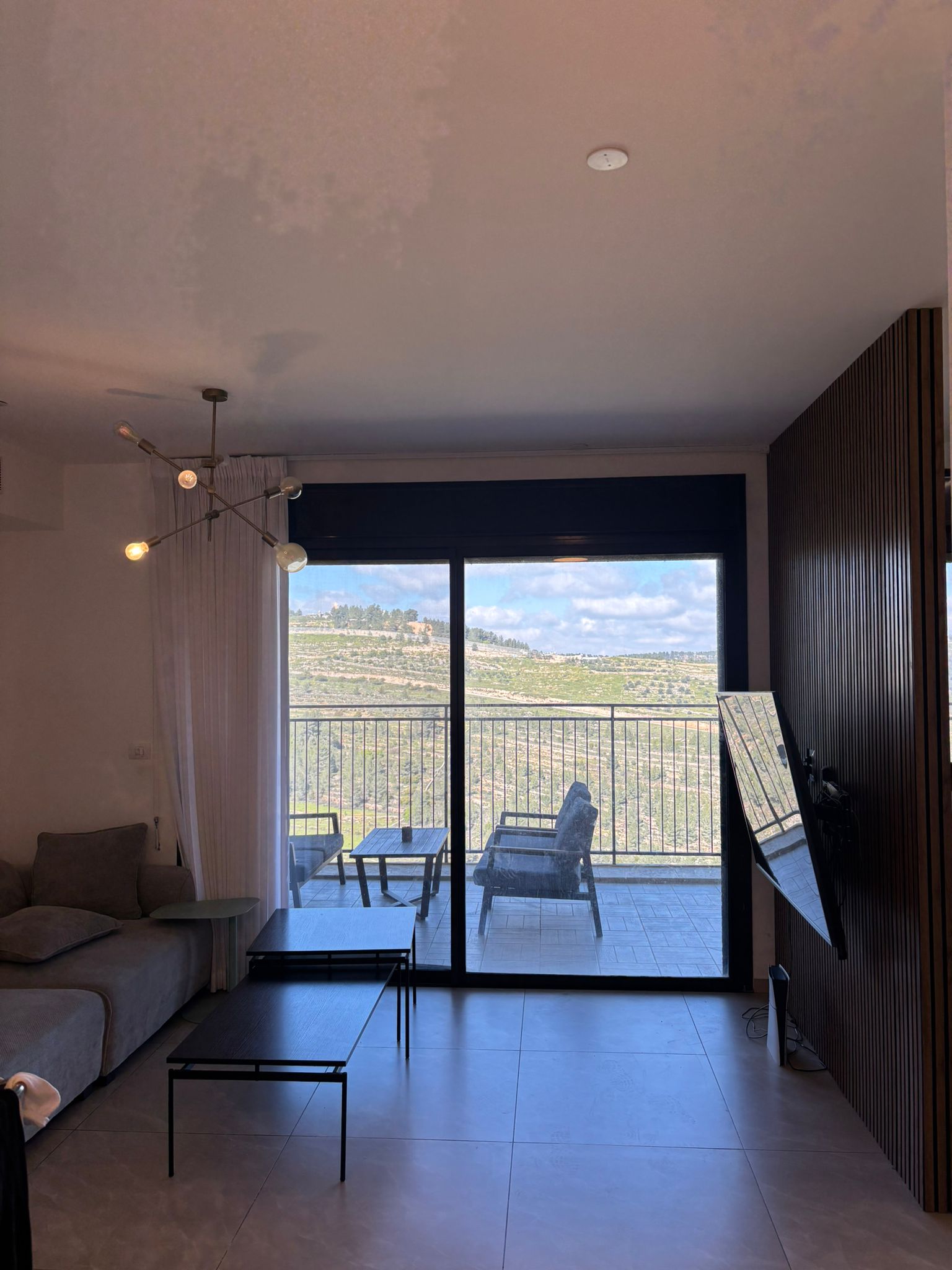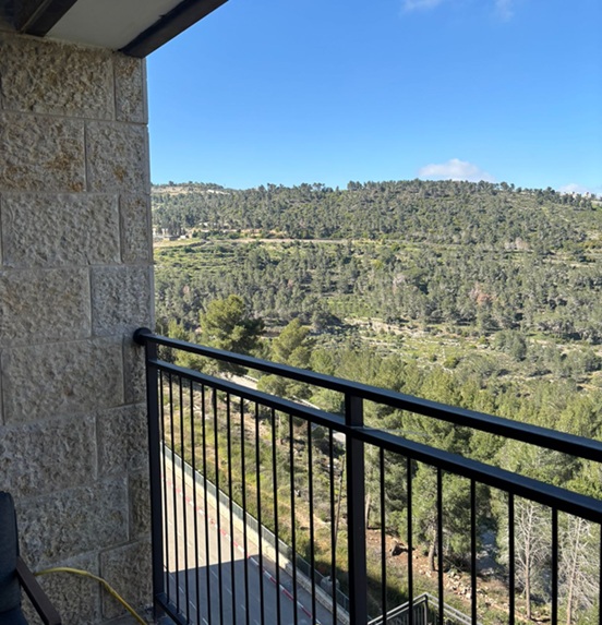 נוף עוצר נשימה: מרפסת סוכה גדולה ומפנקת שמשקיפה לנוף פתוח ומרהיב.