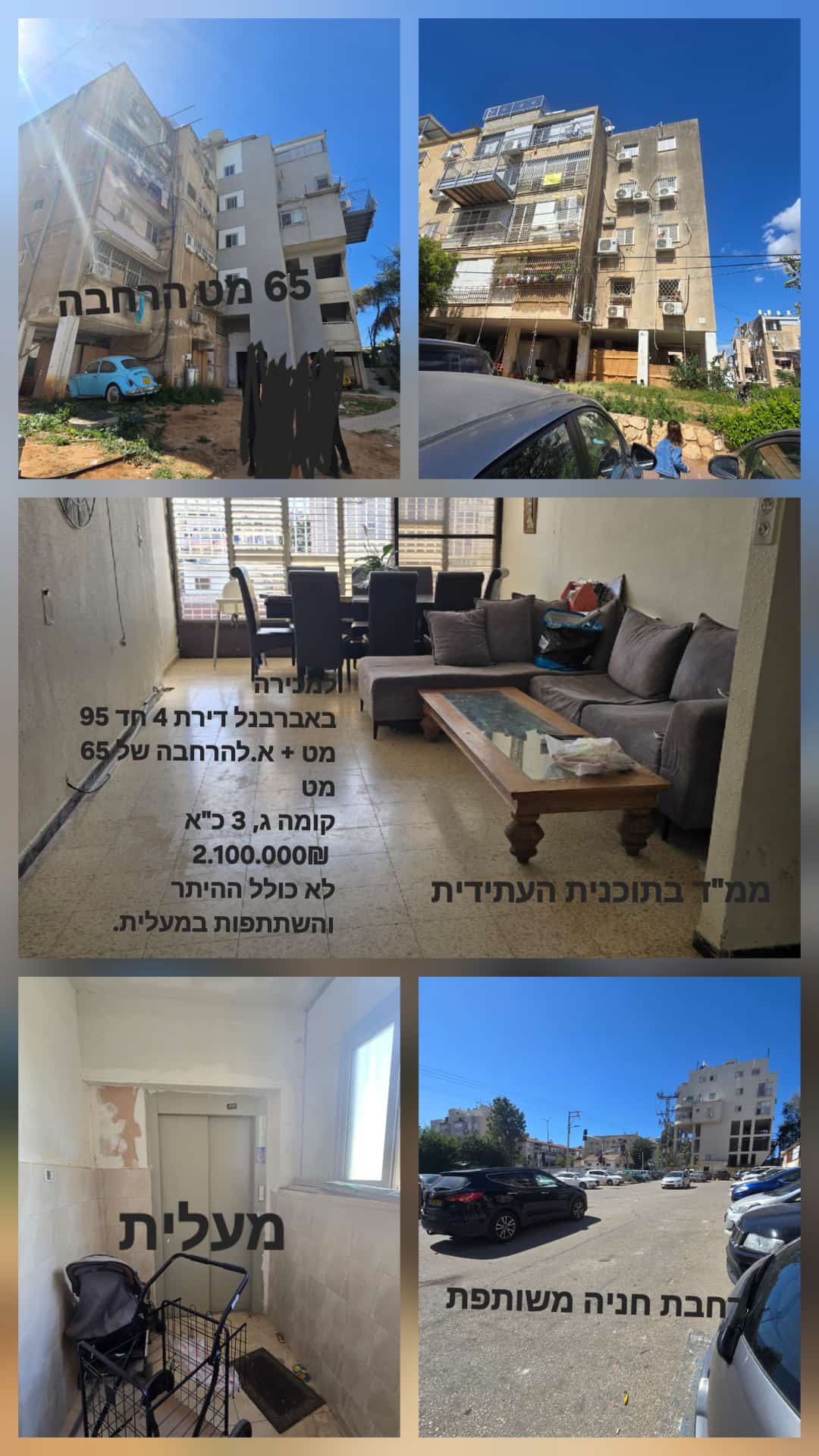 באברבנל פ.כץ בקרבת הרכבת הקלה דירת 95 מט , חזית, קומה ג, 3 כ"א + היתר ל65 מט ( צריך לשלם) מעלית – צריך לשלם אם רוצים להשתתף