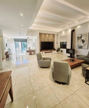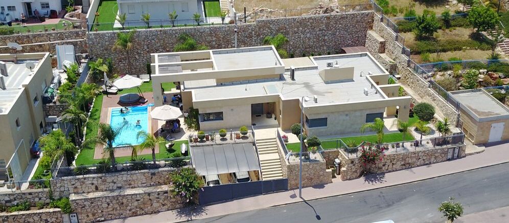 מיגרש 1 דונם,בנוי 350 מ"ר. כל החדרים עם מקלחת ושרותים. מיגרש שטוח פינתי ללא מדרגות פנים עם נוף פתוח. בריכת גלישה 9.5×4.5 פלוס גקוזי . גינון מושלם . 2 חניות מקורות. חיפוי שיש .