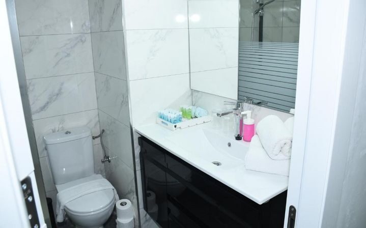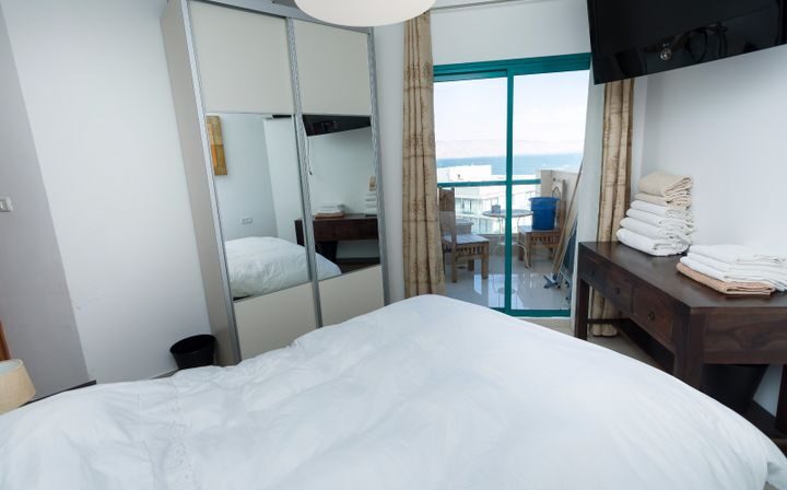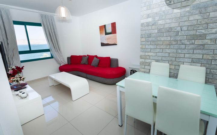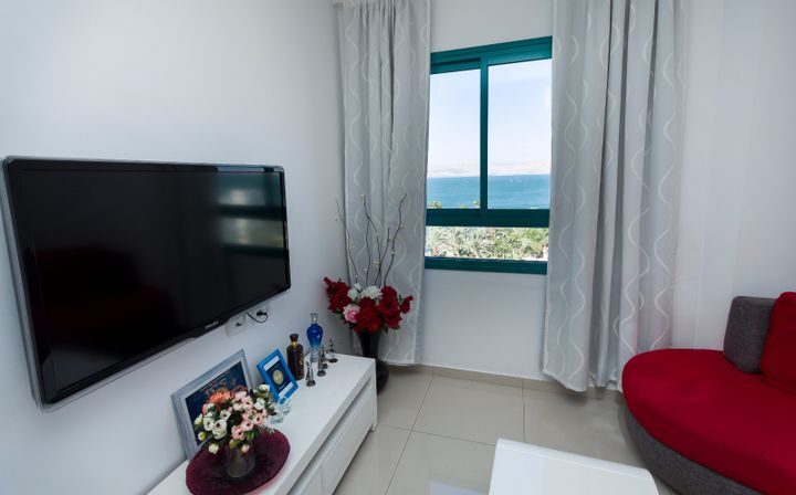 דירת 3 חדרים ממוזגים: 2 חדרי שינה עם מיטה זוגית בכל חדר, פלוס סלון עם ספה דקורטיבית. פלוס מטבח מאובזר קומפלט. חניה חינם במתחם הבנין על בסיס מקום פנוי, אינטרנט חינם, 3 טלוויזיות עם 30ערוצים 7דקות הליכה מהטיילת טבריה