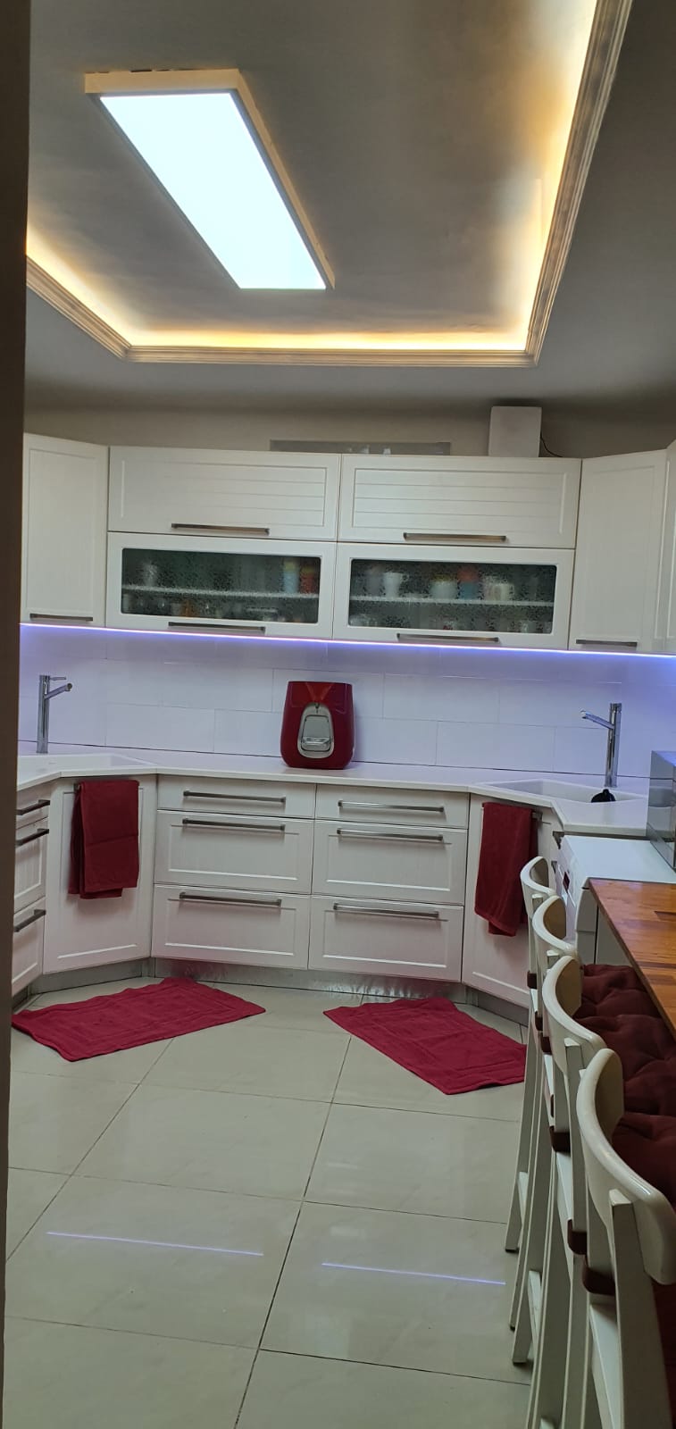 מטבח פונקציונאלי עם הרבה פתרונות אחסון.