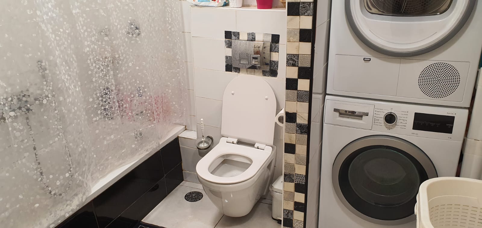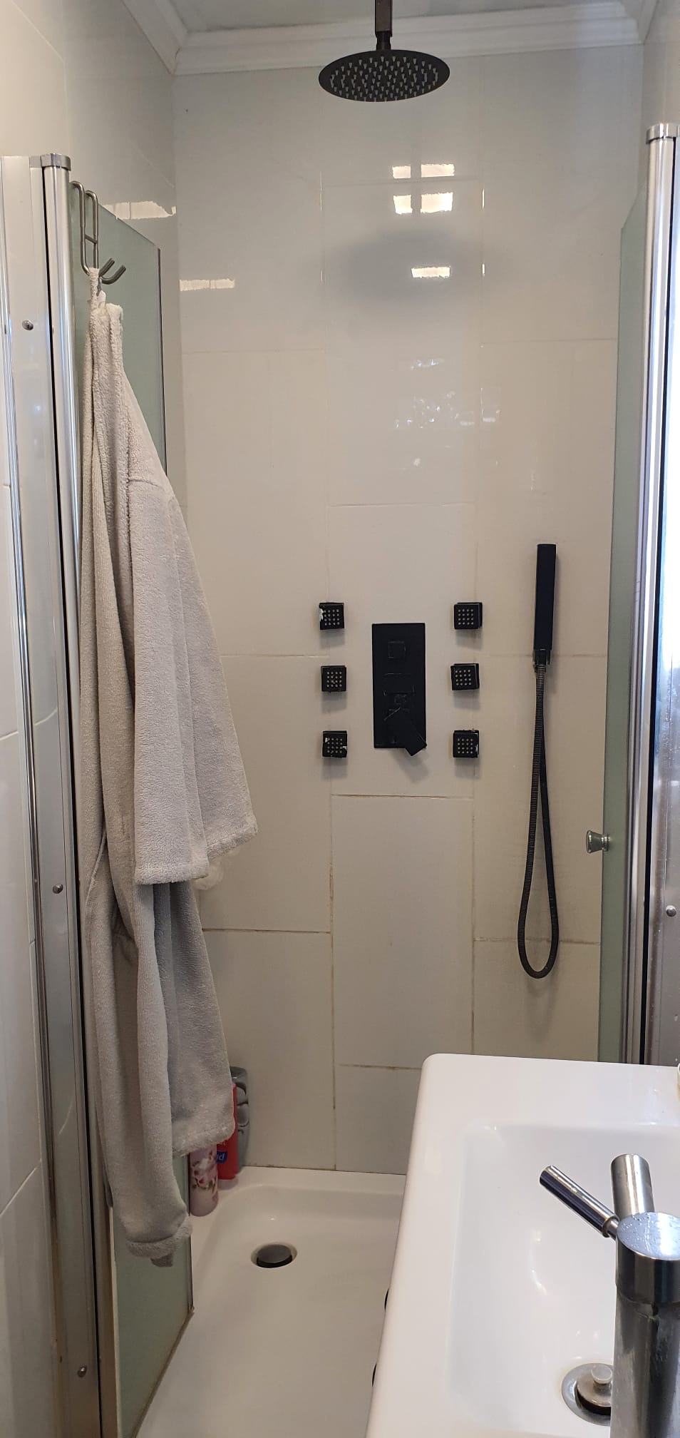 שתי מקלחות עם שתי דודי שמש נפרדים.