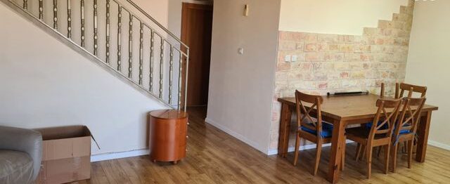 דירת 2 קומות, 5 חדרים. קומה ראשונה- סלון, פינת אוכל, מטבח, חדר שינה, ממ"ד, אמבטיה, מרפסת שרות. קומה 2 יחידת הורים + מאסטר עם מרפסת גדולה. חדר שינה ומחסן צמוד. הדירה משופצת, פרקט כל הבית, שמורה במצב מצוין.