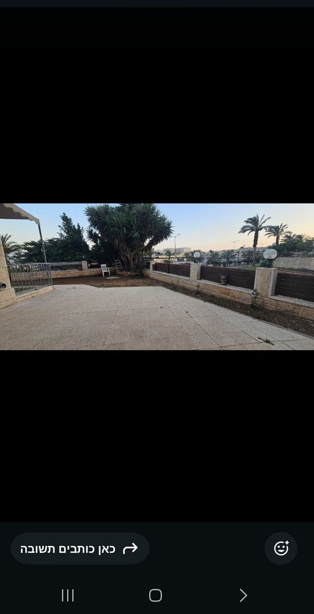 דירת גן ענקית ברחוב של בתים מדורגים, הבית האחרון עם פרטיות 187 מ"ר, חצר היקפית 250 מ"ר במקור 6.5 חדרים כאשר חדר אחד הוסב לפינת אוכלת מרווחת מאוד שני מטבחים גדולים חדר אמבטיה גדול ומפנק אופציה לבניית יחידת דיור יש אישור עקרוני להגעה לנכס יש לרדת מדרגות