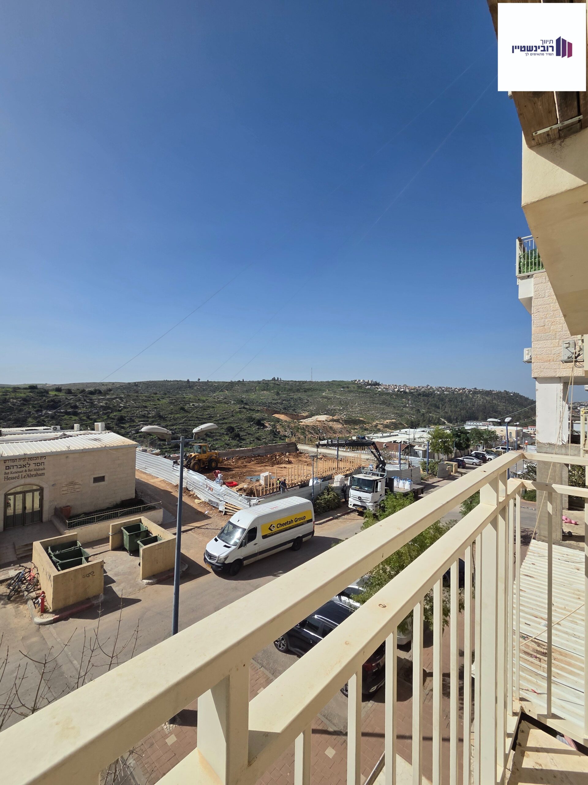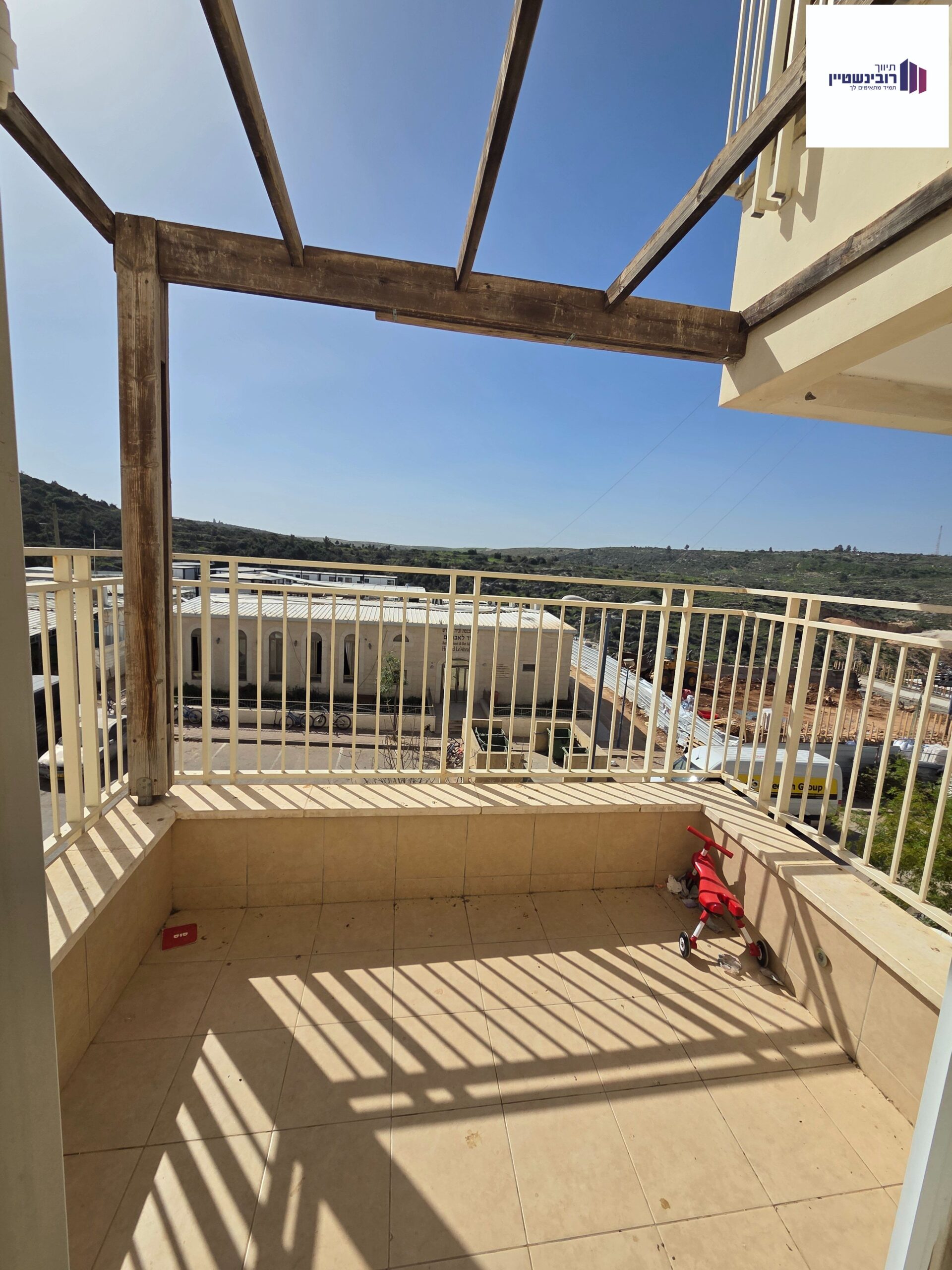 דירה בקומה ראשונה, שני מרפסות, מרפסת אחת מוכנה לאופציה לחדר רביעי, קיים כבר רצפה, תקרה, ושני קירות, אופציה עתידית לחדר חמישי, נוף פתוח
