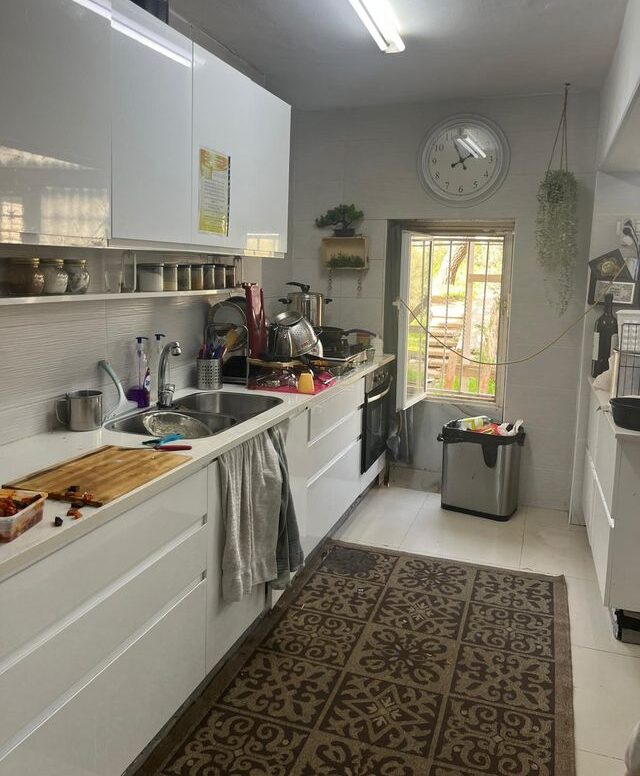 מכירה בטאבו משותף [70% מהדירה] יש חצר מרוצפת עם עצי נוי, ועוד חצר עם פרגולה לסוכה, אפשר בקלות לחלק את הדירה ולהשכיר חלק ממנה יש תשתיות מוכנות, [אפשר לחלק ל 2+3 או ל1+4]