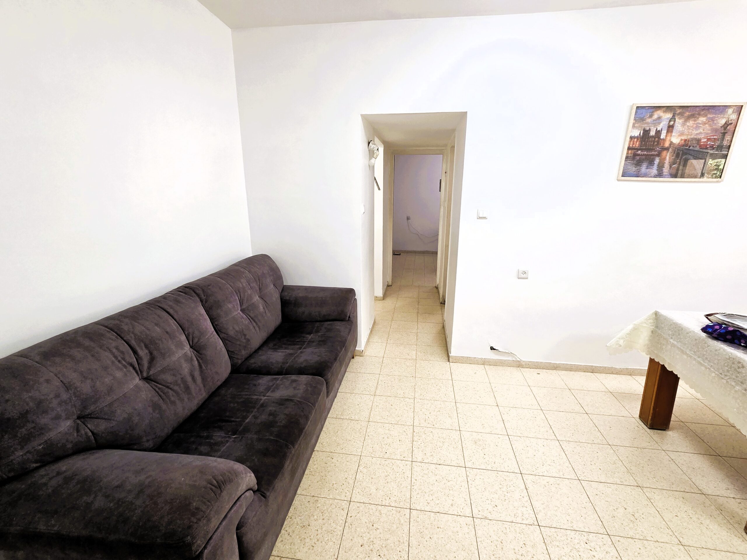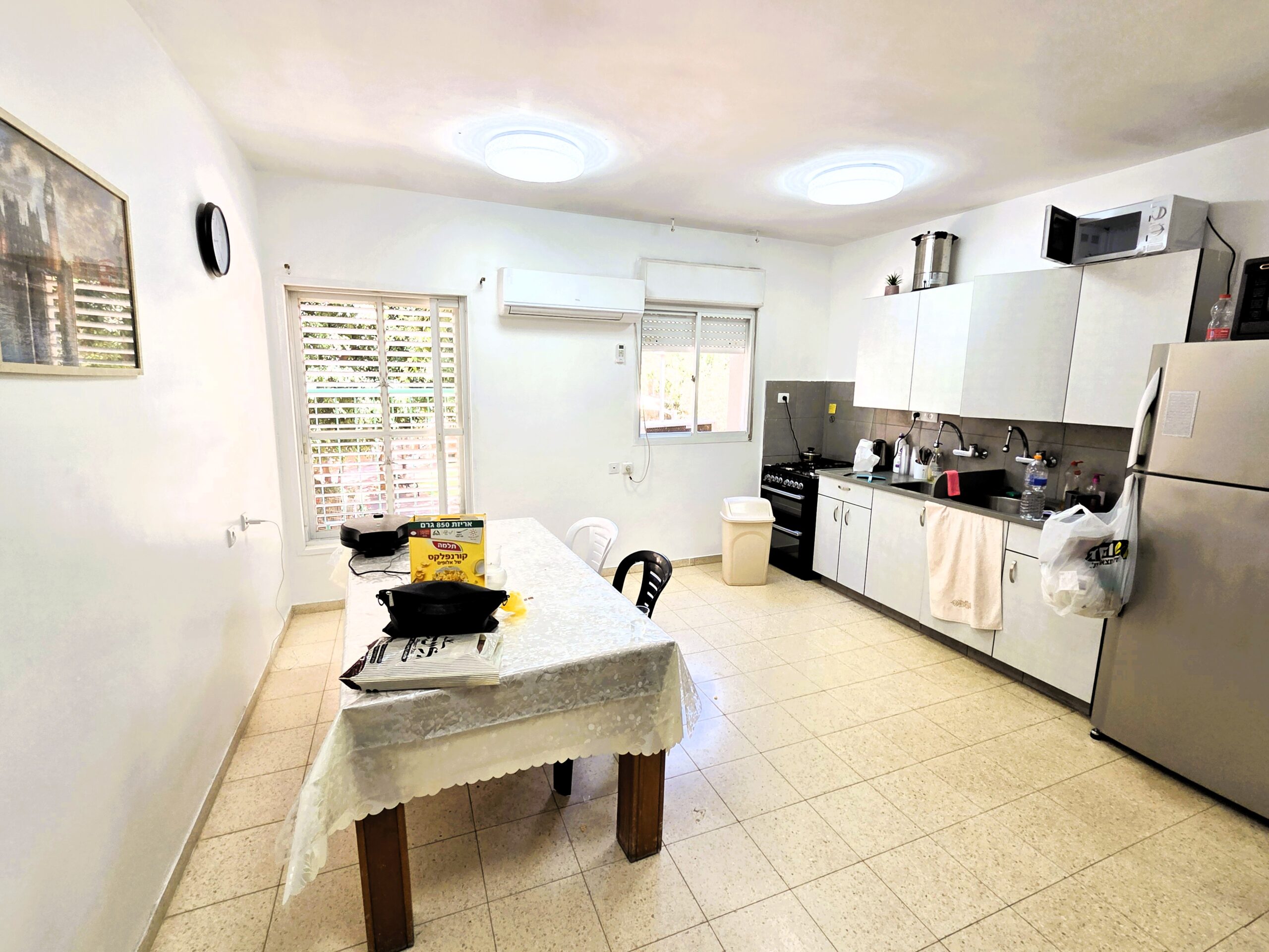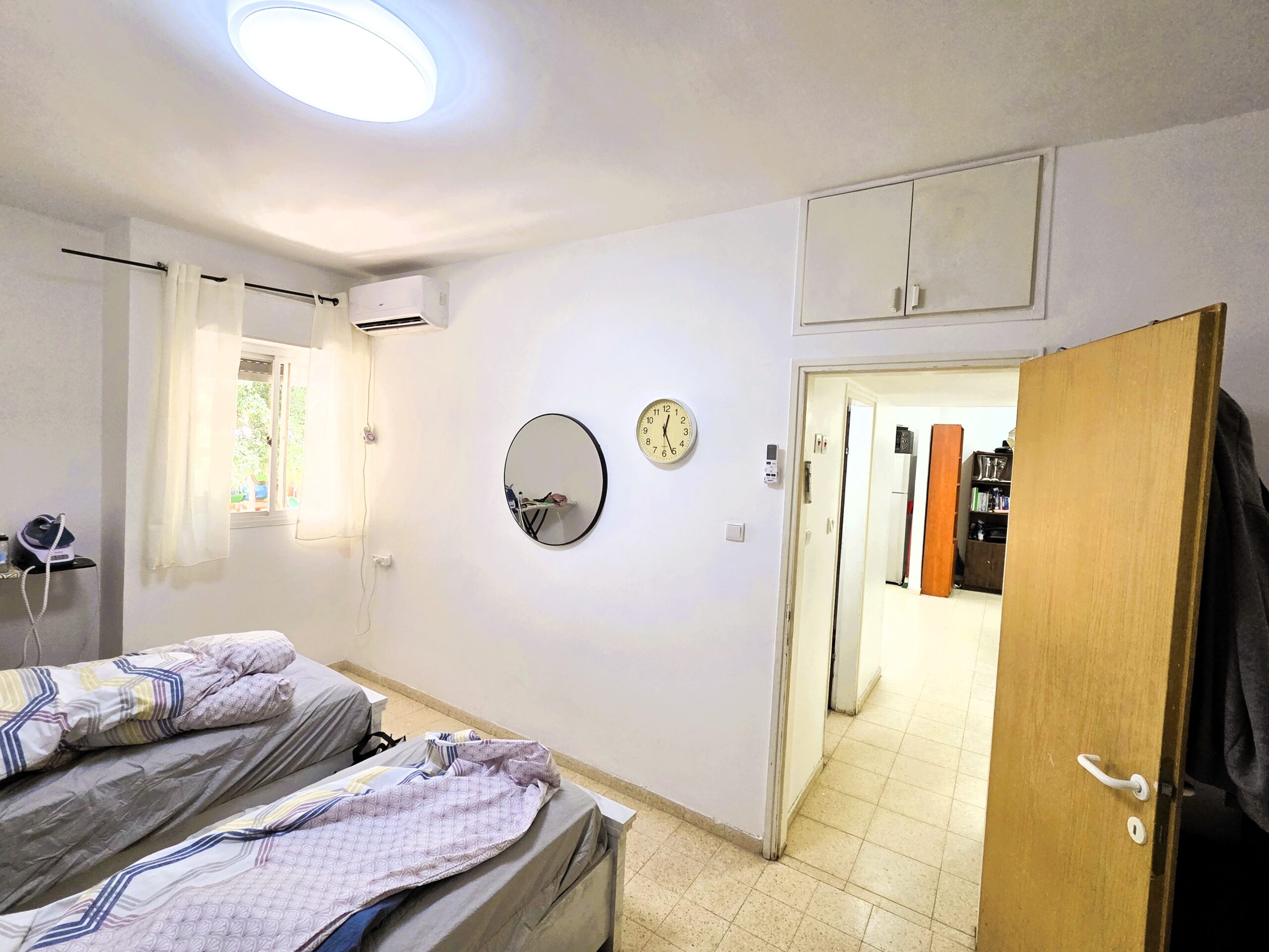 דירת 2 חד' גדולה, בסוף מש"ח, שמורה מאד, עולים חצי קומה, מעליו יש גג פרטי + מדרגות על כל השטח של הדירה, ניתן לחלק ל-2 אנשים