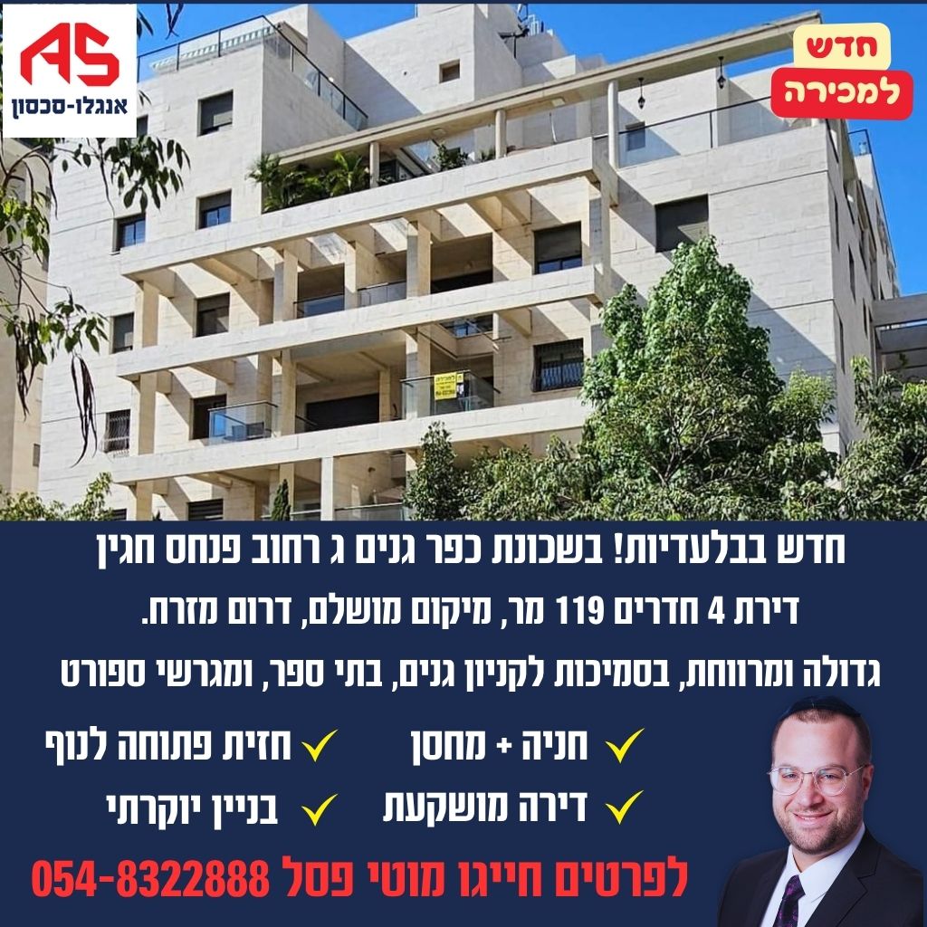 פרויקט כהנמן בבני ברק – דירות מאוכלסות, 3–4 חדרים, כולל פנטהאוזים, עם סוכה, מיזוג ומטבח