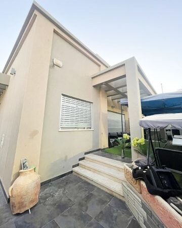 וילה בדימונה ברח' קומראן בשכונת ממשית וילה 5 חדרים 183 מ"ר בנוי 230 מ"ר גינה 413 שטח מחסן חנייה מקורה ממ"ד חדר שירות עם יציאה לגינה מזגן מיני מרכזי תקרה גבוהה 3.20 מטר יחידת הורים עם שירותים מקלחת וחדר ארונות פינוי גמיש
