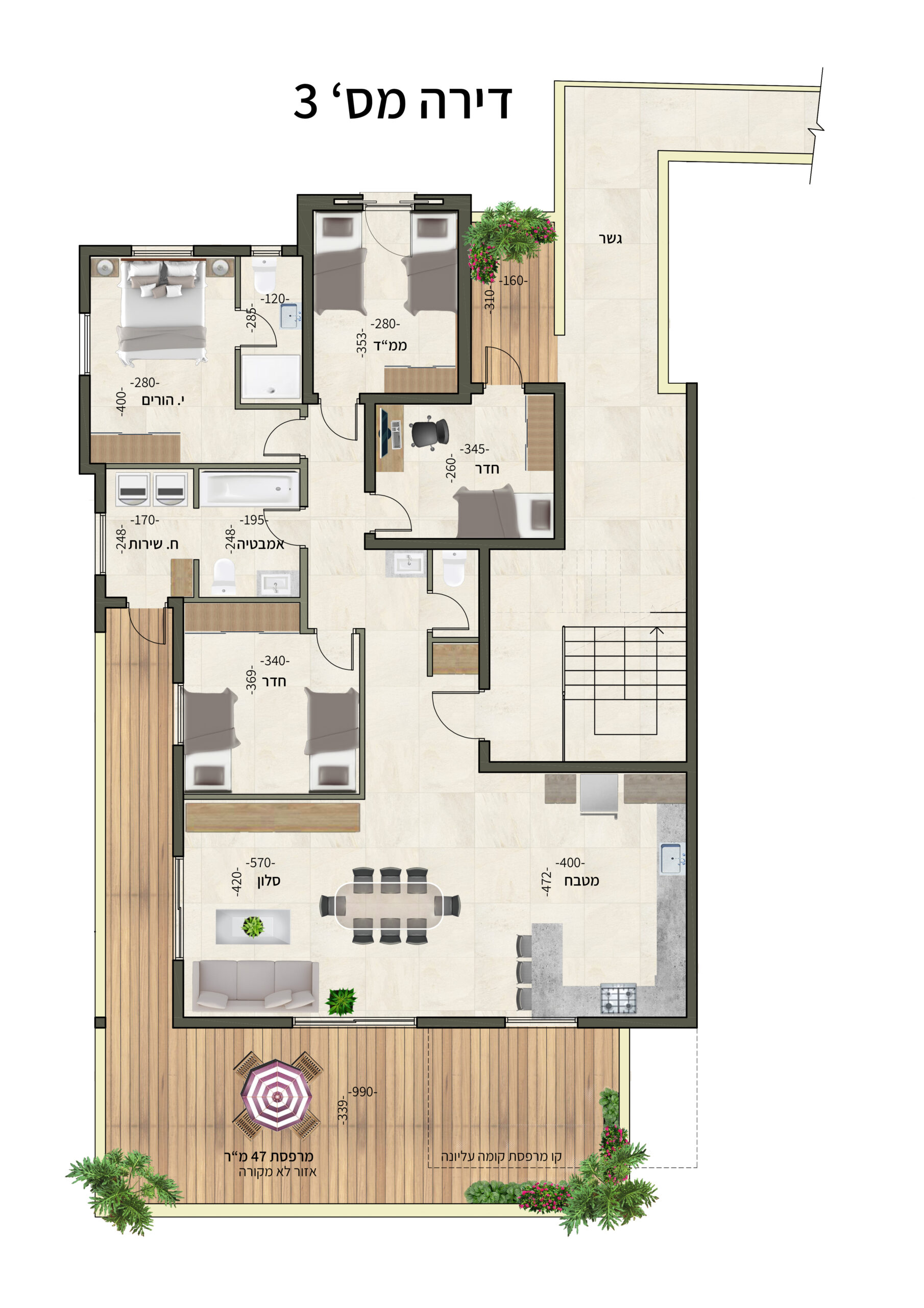 דירה ענקית עם מרפסת 47 מטר