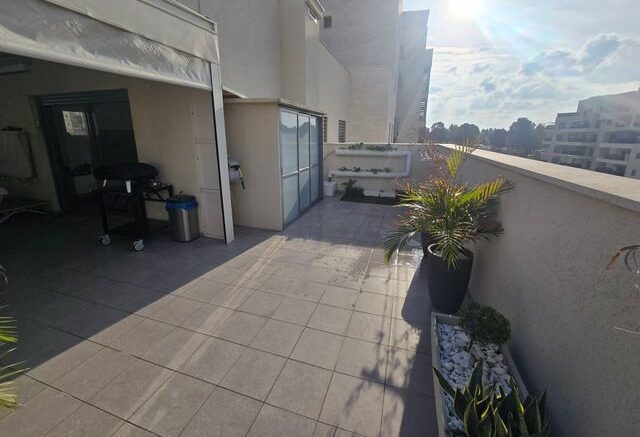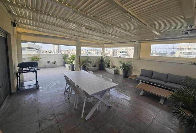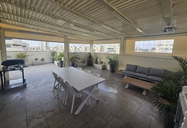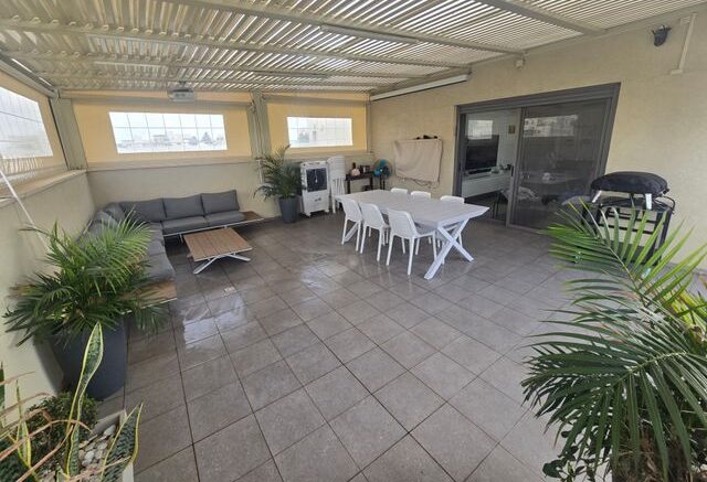 דירת גג/פנטהאוז ברחוב קק"ל, 5 חדרים, 120 מטר בנוי , מרפסת כ70 מטר, פרגולה מאלומיניום , נק' גז במרפסת , הכנה לחימום מים בגז קומה 3 מתוך 3 דירה יחידה בקומה! מטבח ציפוי קריסטל 2 חנויות צמודות עם עמדת טעינה מהלוח של הדירה מזגן בכל חדר, ומיני מרכזי לסלון -מבטח מחסן צמוד לדירה סורגים שקופים